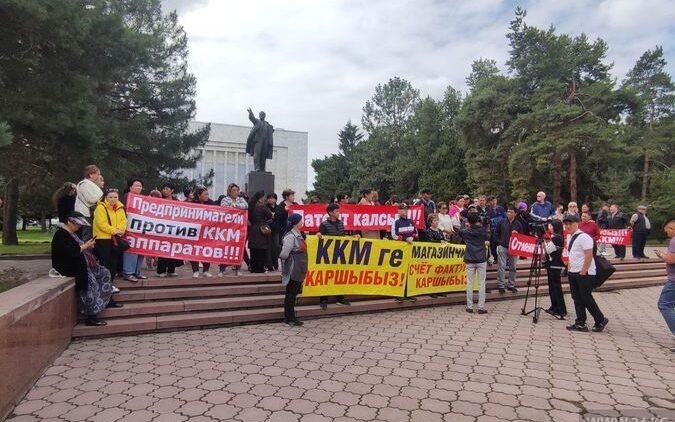 Более 100 человек собрались возле здания администрации президента. В Бишкеке с утра проходит митинг владельцев павильонов против обязательного использования контрольно-кассовых…