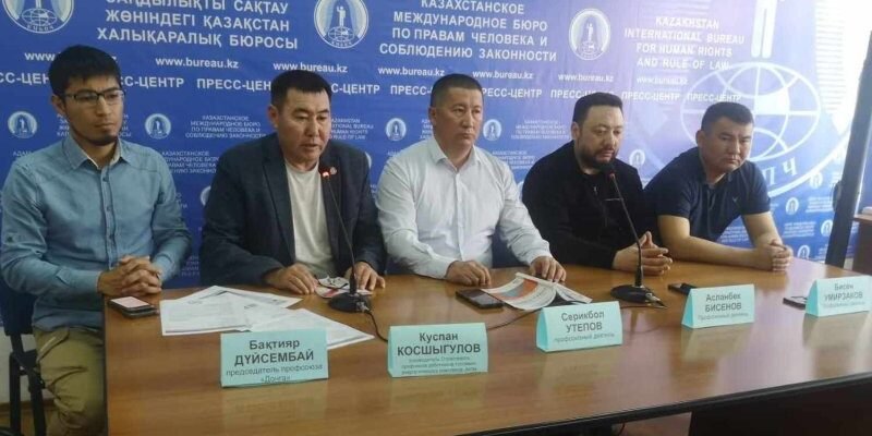 Профсоюзные активисты Мангистауской и Актюбинской областей во время пресс-конференции в Казахстанском международном бюро по правам человека и соблюдению законности (КМБПЧ) рассказали о давлении и увольнениях, с которыми они сталкиваются при создании или участии в профсоюзных организациях.