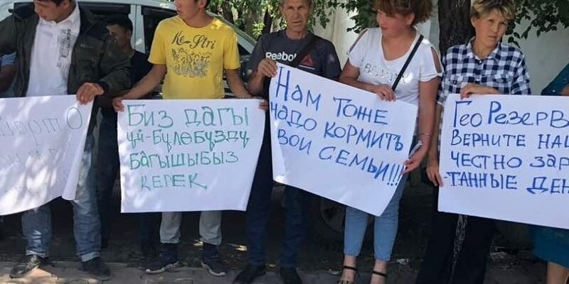 Сегодня в г. Бишкек по ул. Юдахина 70.а возле офиса ЗАО «ТК Гео Резерв» (фабрика Ак-Тюз) состоялся митинг работников с требованием погашения задолженности по выплате заработной платы за последние 5 месяцев.
