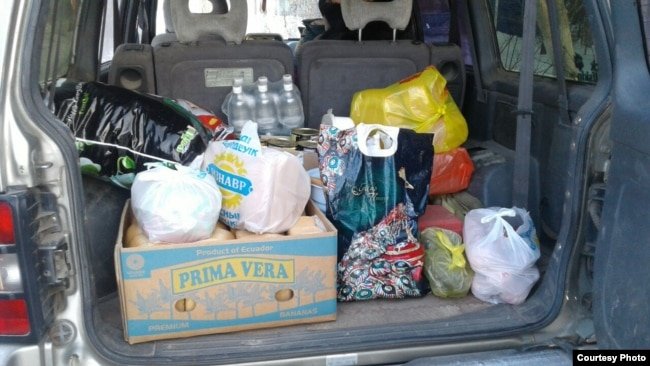 Жители подвозят к шахтам, где бастуют шахтеры, продукты питания, питьевую воду и теплую одежду. Шахтинск, 12 декабря 2017 года.