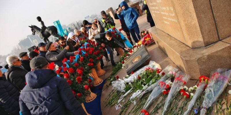 В 11 утра у монумента Независимости в центре Алматы начали собираться люди: возлагали цветы к подножию памятника, молились, фотографировались, разговаривали между собой. В некотором отдалении от монумента дежурили полицейские, наблюдая за происходящим.