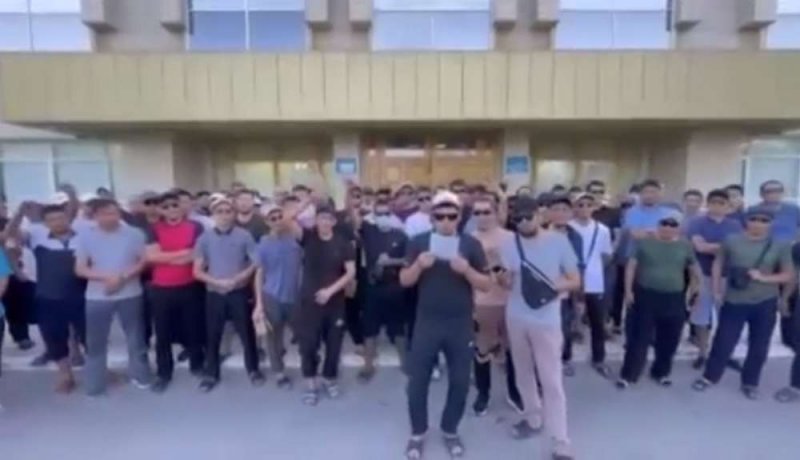 DetailsНесколько десятков безработных мужчин собрались у здания акимата Жанаозена и записали видеообращение.