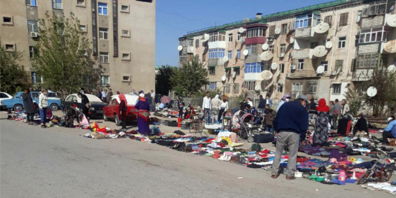 Mundan bir hepde töweregi ozal, Türkmenabadyň merkezine ýakyn raýonlaryň birinde pulsuzlykdan kösenýän ilat gün-güzeranyny aýlamak üçin öz şahsy emläklerini we öý goşlaryny, şol sanda egin-eşiklerini, gap-gaçlaryny bazar nyrhyndan has arzan bahadan satuwa çykaryp başlady.